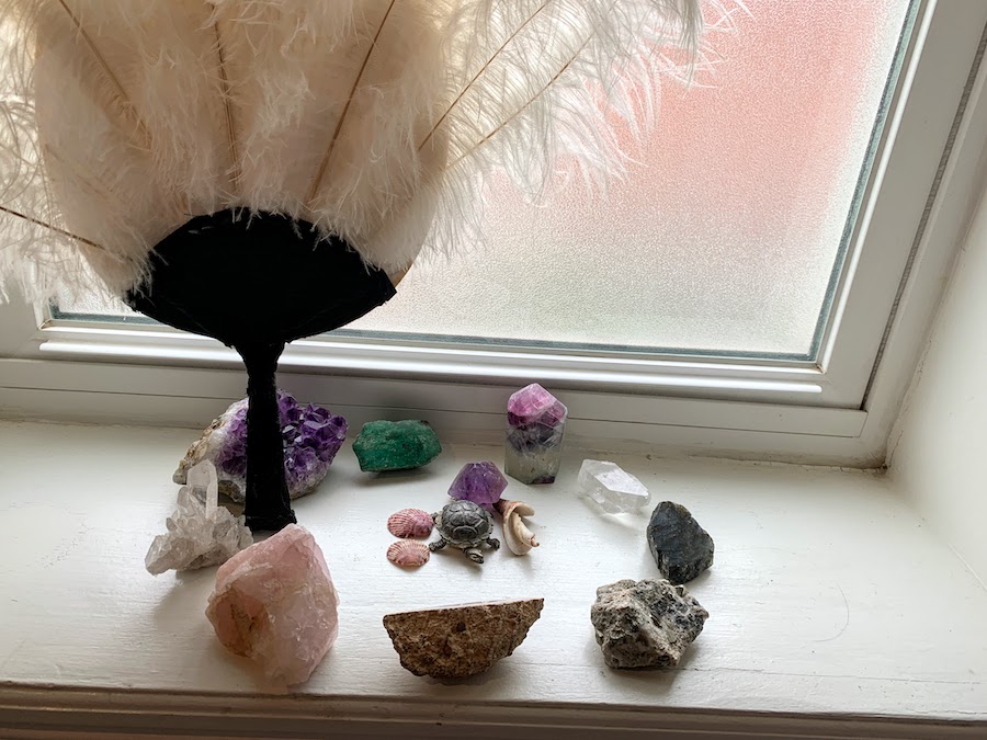 Since I received these stones from my parents and brought them to their new home in Hamilton, they have sat in more or less the same positions on the same window sill in my bathroom. We had a cleaner for a time and she would move them into a rough pile in the corner of the sill and then I would dutifully reset to their “correct” spacing feeling mildly perturbed. My attachment was showing. Years passed.