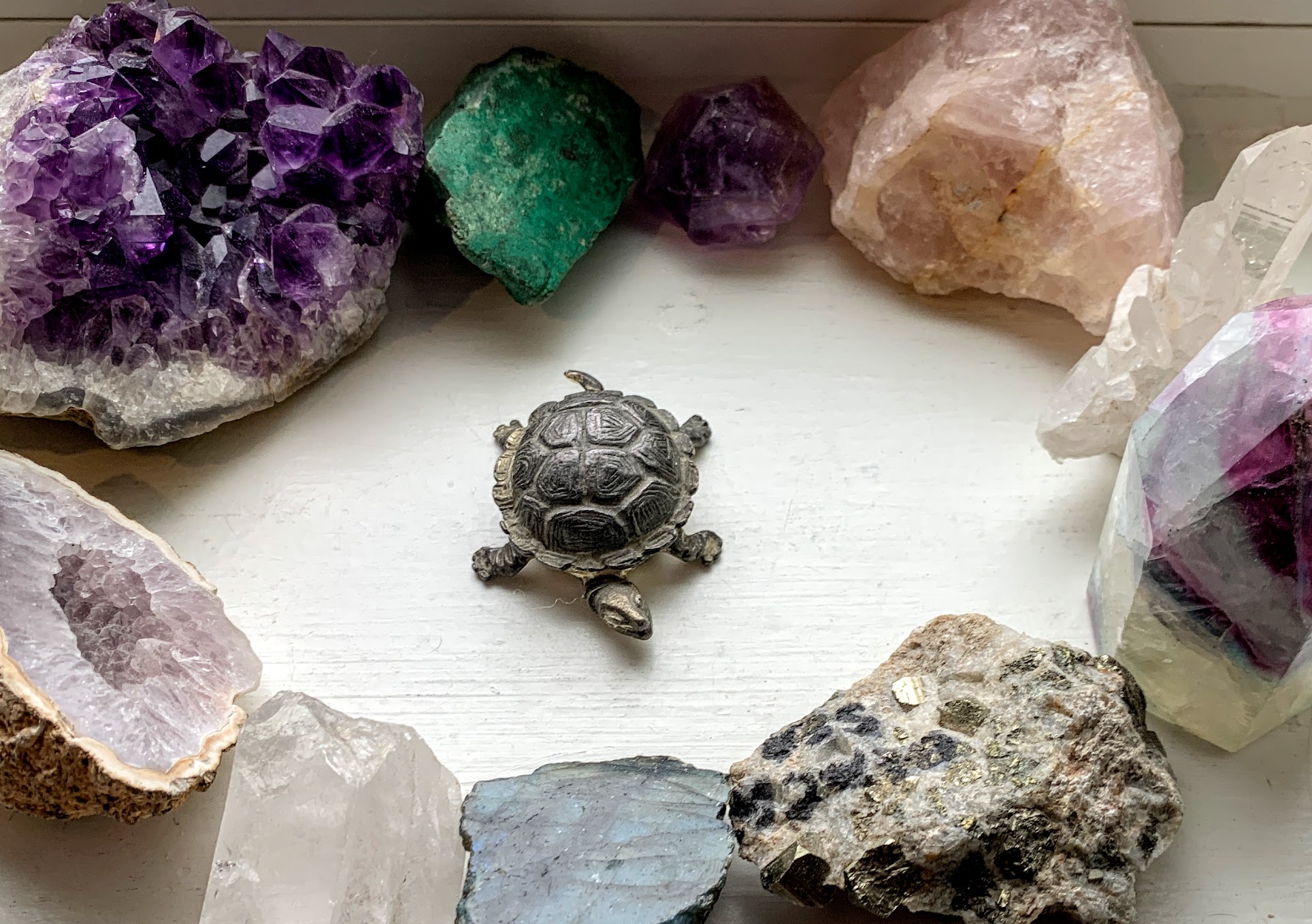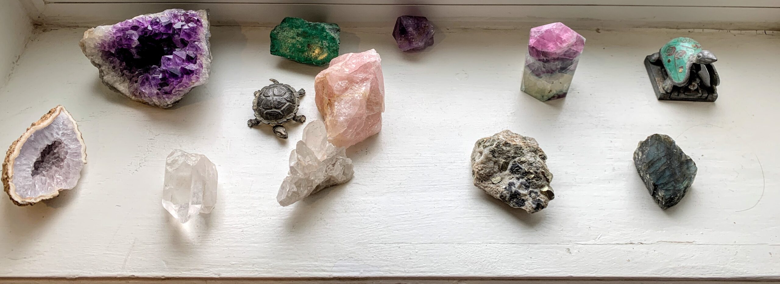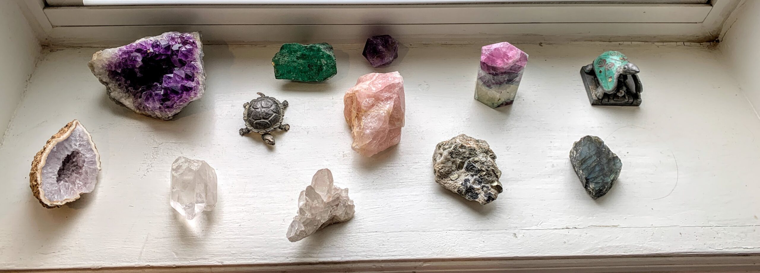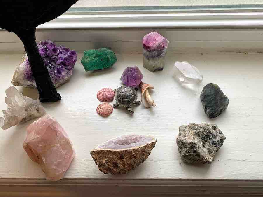 These are the stones that sit by my window. They were given to me by my parents as they downsized. Unbeknowst to me, or at least to my conscious mind, they ultimately became very helpful tools in my own healing. Not in a crystal healing kind of way; more in an expressive arts therapy/sand play/creative play sort of way. So, I humbly have a story to share.